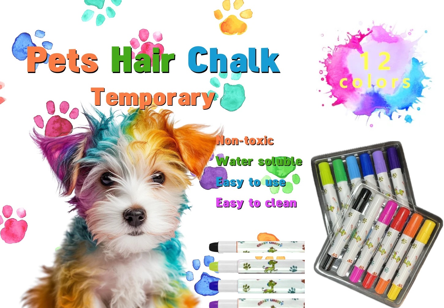 - 12 Vibrant Colors: CRAZY LIBERTY Pet Hair Color Chalk Pens offers a spectrum of 12 vibrant and eye-catching colors, allowing you to express your pet's unique personality through temporary and safe hair dye.